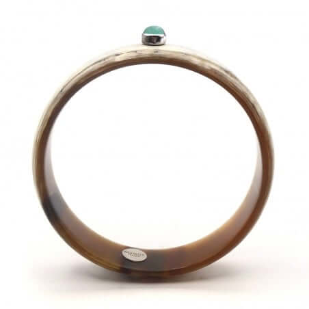 Bangle in clear horn 15mm set in silver - stone 6 mm