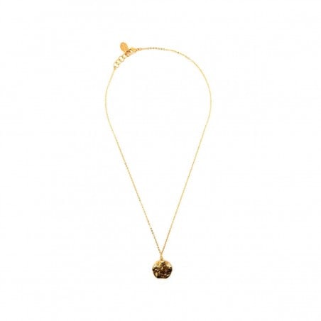 - Yellow gold plated necklace, thin and beaded, with a horn petal pendant