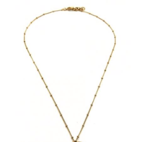 - Yellow gold plated necklace, thin and beaded, with a horn petal pendant