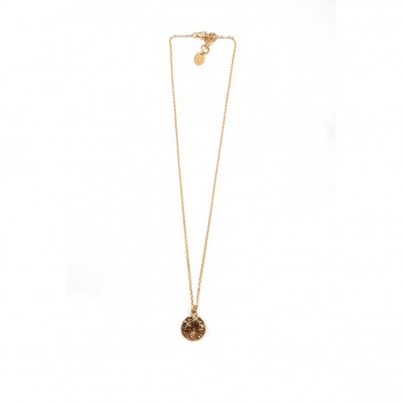 - Yellow gold plated necklace, thin and beaded, with a horn petal pendant