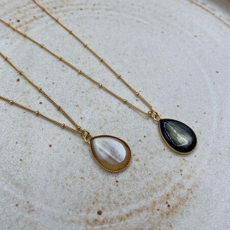 - Yellow gold plated necklace, thin and beaded, with a horn petal pendant