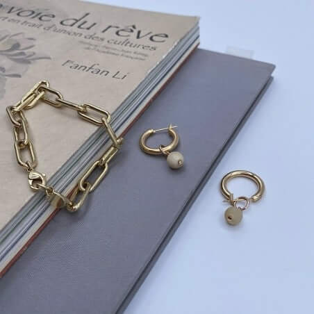 This attractive earring Kassandra in horn and metal gilded in the yellow gold is so simple and elegant at the same time, as they are portable in any opportunities !