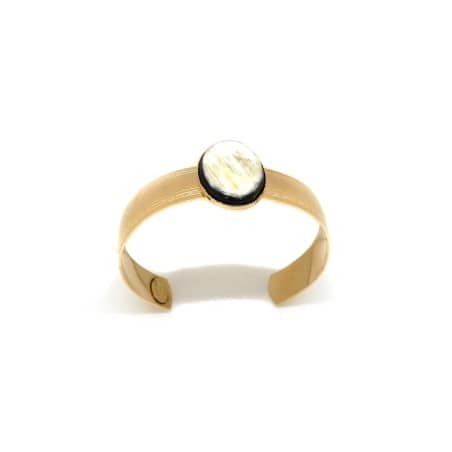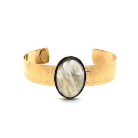 - Yellow gold plated cuff bracelet composed with two bands and decorated with two horn petals