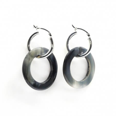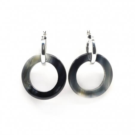 Silver hoop earrings - ring dark horn