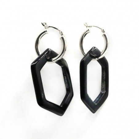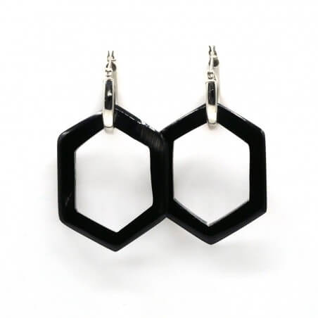 Silver hoop earrings - Hexagonal L rings in dark horn