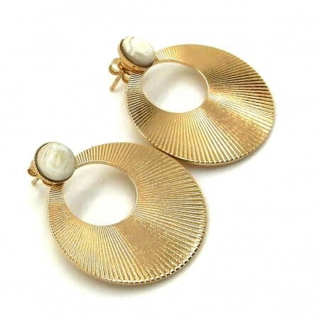 These Milena earrings are worked in horn and gold plated 3 microns. Wear the only ones like the models Aeneas earrings or with the pellets. Customize the color of the horn.