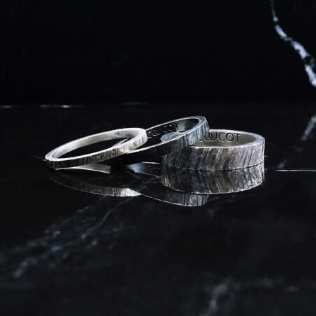 Cet stacker est fabriqué en petite série au sein de notre atelier lillois en argent massif poli ou vieilli. Chaque stacker Tungst-N-L est un ensemble de bagues uniques car elles sont fabriquées à la main. Possibilité d’ajouter des pierres précieuses tels que des diamants noirs ou blancs ainsi que vos pierres de famille.