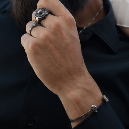 bijoux intemporels Man signet ring - Steinn CHSTEI €400.00 Through this collection the horn combines with silver to reveal their structures in this unisex collection. This fine signet ring in 925 silver has a horn oval for a side that is both elegant and strong. Handmade in our workshop, this ring is a strong and unique piece full of character. Weight: 10 gr Oval dimensions: 2cm * 1.2cm Add to cart