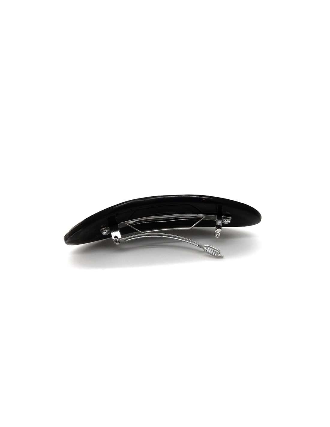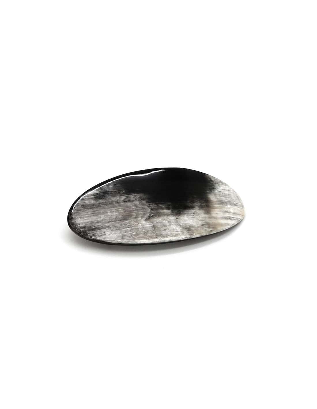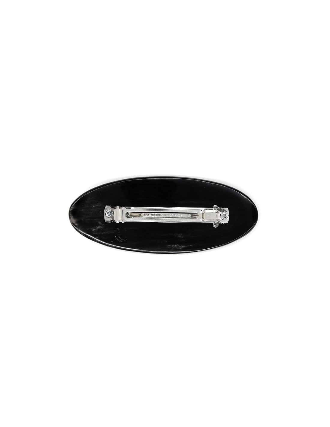 Cette barrette en corne de forme ovale mêle simplicité et élégance.
