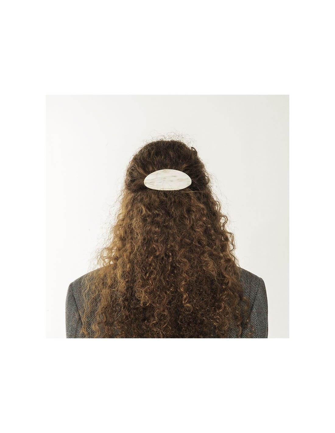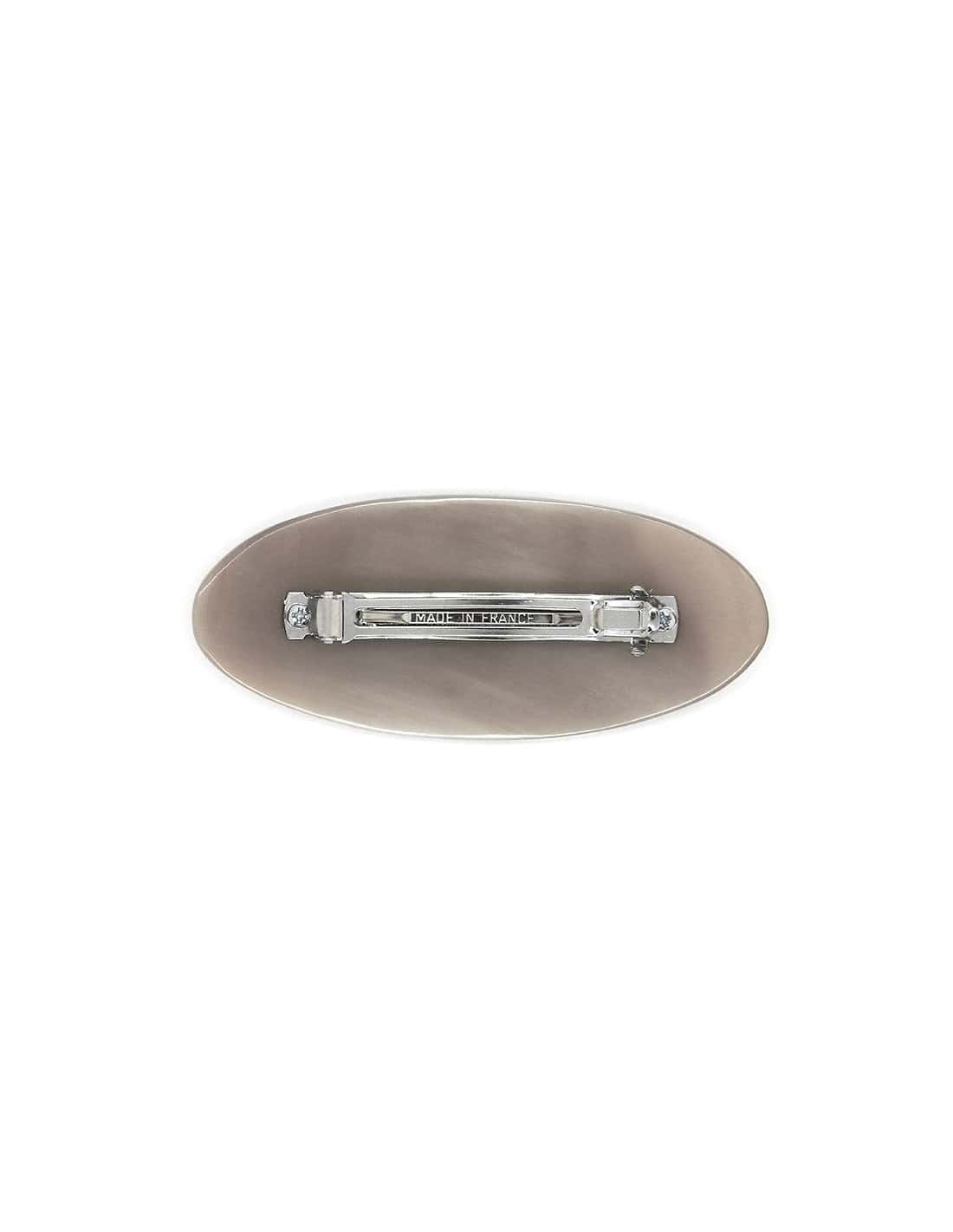 Cette barrette en corne de forme ovale mêle simplicité et élégance.