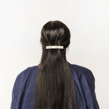 Eloge de la simplicité et aussi sobre que délicate, cette barrette en corne apporte une touche de lumière dans votre chevelure de reine.