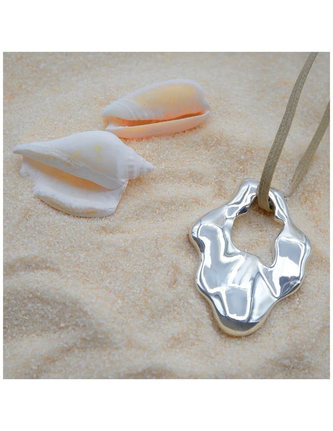 Le collier sautoir Halo allie élégance et modernité avec ses formes ondulantes sculptées à la main, inspirées des vagues. Ce modèle minimaliste se distingue par un cordon en coton ciré nude, rappelant la couleur du sable, apportant une touche subtile de nature. Parfait pour le quotidien ou des occasions spéciales, ce collier se porte avec une blouse ou une robe, créant une silhouette délicate et sophistiquée, tout en s’adaptant à chaque personnalité.