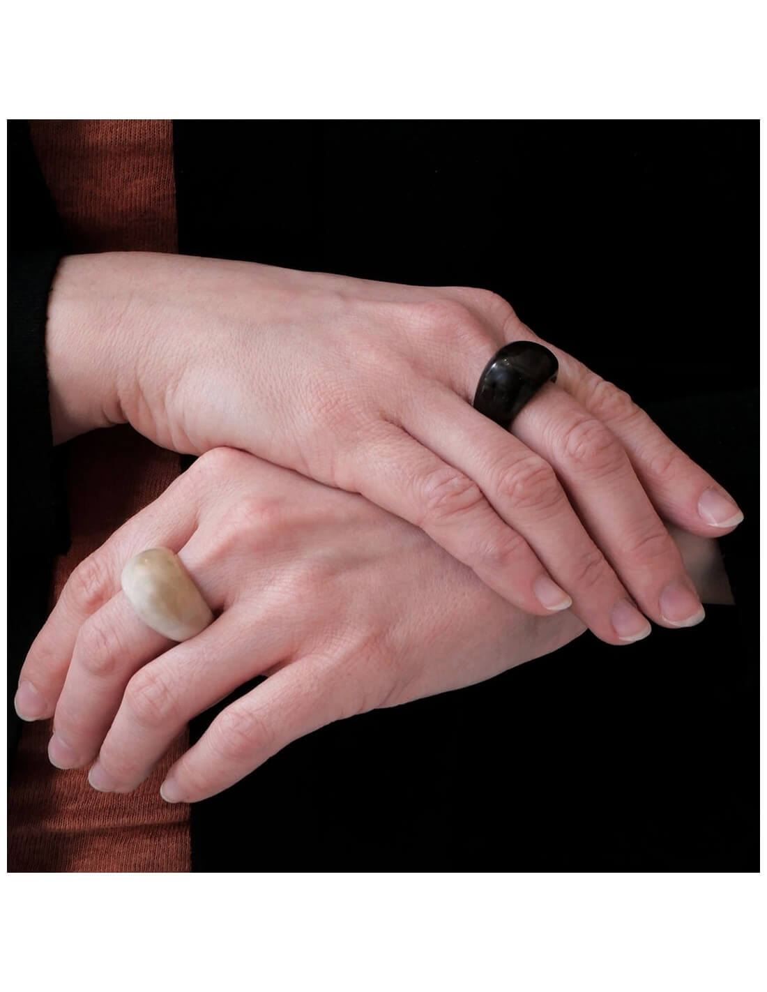 Cette bague en corne est un bijou unique grâce à ses tonalités naturelles. Parce que nous souhaitons que nos bijoux vous accompagnent toute votre vie, ces derniers sont fabriqués en corne véritable. Cette bague en corne est entièrement réalisée à la main dans notre atelier en France.