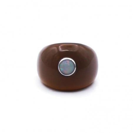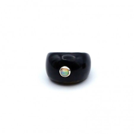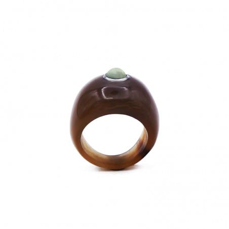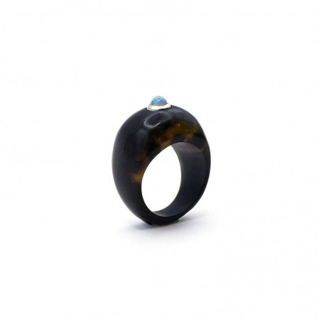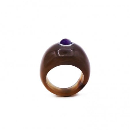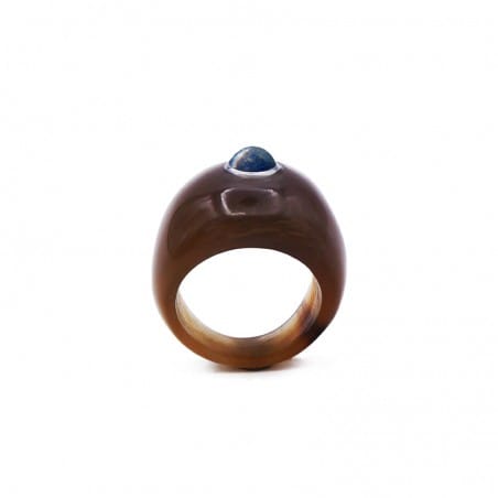 Craquez pour cette bague empierrée des plus belles gemmes. Cette bague généreuse en corne est surmontée d’une pierre ronde taillée en cabochon de diamètre 6 mm. La pierre fine apporte éclat et lumière à la corne, et crée une dualité intriguante et mystérieuse. Faites votre choix parmi 9 pierres fines : des plus sombres aux plus lumineuses.