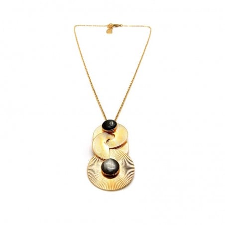 Le collier Pandia est en plaqué or orné de trois médailles striées.