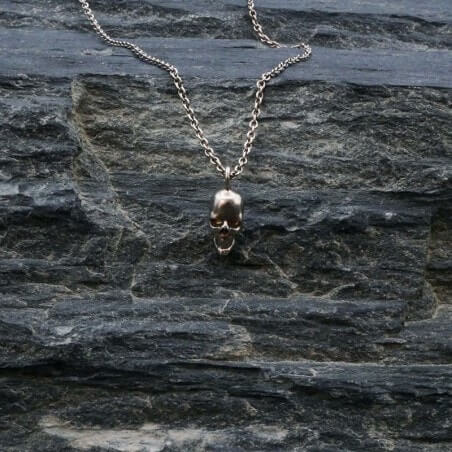 Véritable ôde à la vanité et rappel de la locution latine “memento mori” ce collier tête de mort stylisé par Coucot vous accompagnera dans le temps. Parce que nous souhaitons que nos bijoux vous accompagnent toute votre vie, ces derniers sont fabriqués en argent 925. Ce collier est entièrement réalisé à la main dans notre atelier en France.