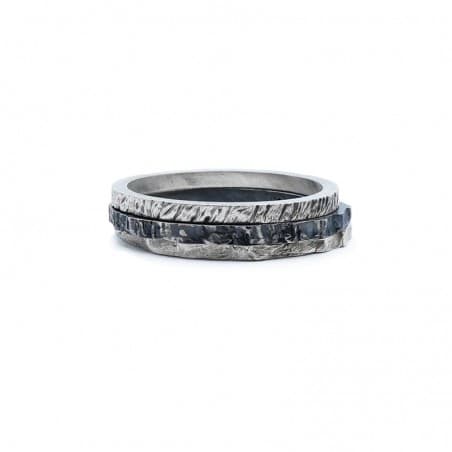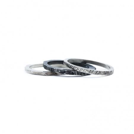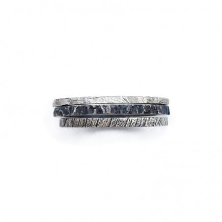 Ce stacker fin est un ensemble de trois anneaux évoquant les trois éléments : le métal, le bois et la glace travaillés à l'état brut. Ce stacker fin alterne anneau vieillis et anneau poli. Accumulez ces anneaux ou portez-les de manière indépendantes. 25€ de remise par l'achat de ce stacker.