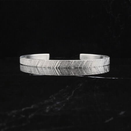 Cette manchette Tungst-N-S est fabriquée en petite série au sein de notre atelier lillois. Cette manchette est singulière et fait la différence en deux points : l'intégralité de sa fabrication est réalisée sur le sol français et par le travail de métal au travers des effets de matières évoquant les matières naturelles telles que le métal, le bois ou encore la glace.
