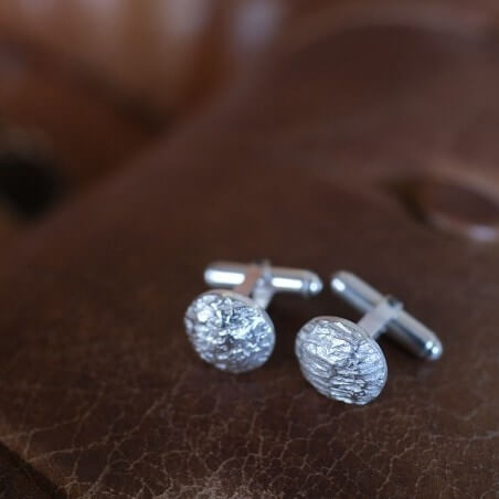 Ces boutons de manchette sont travaillés avec un aspect de matière évoquant le bois à l'état brut. Idéal pour une cérémonie tel qu'un mariage.