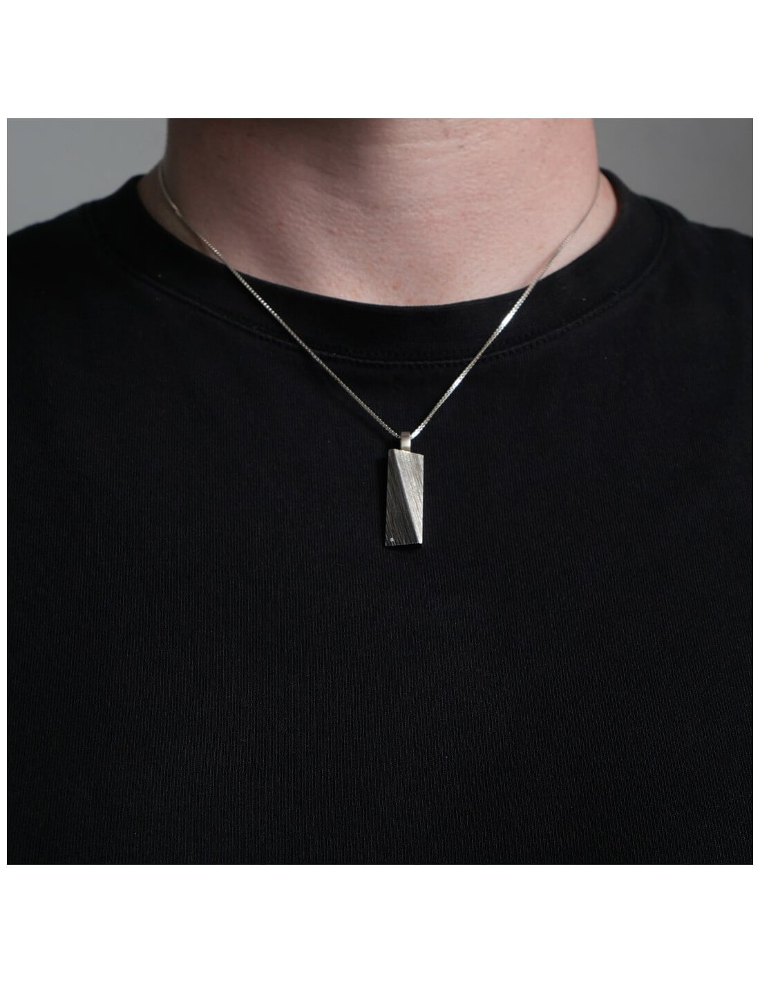 Cette collier diamant homme, inspiré du tungstène, métal symbole de résistance et de force. Sa plaque en argent massif, sculptée à la main, dévoile des strates minérales aux lignes nettes et séduisantes. Un diamant blanc discret vient souligner cette tension entre matière brute et éclat précieux.