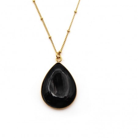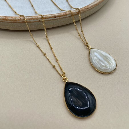 Sautoir plaqué or fin et perlé orné d’un pendentif pétale en corne