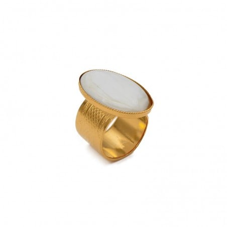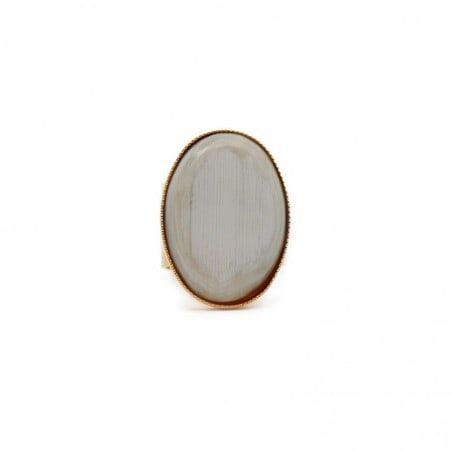 Bague plaquée or jaune (3 microns) finement travaillée ornée d’un ovale en corne