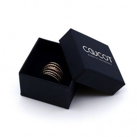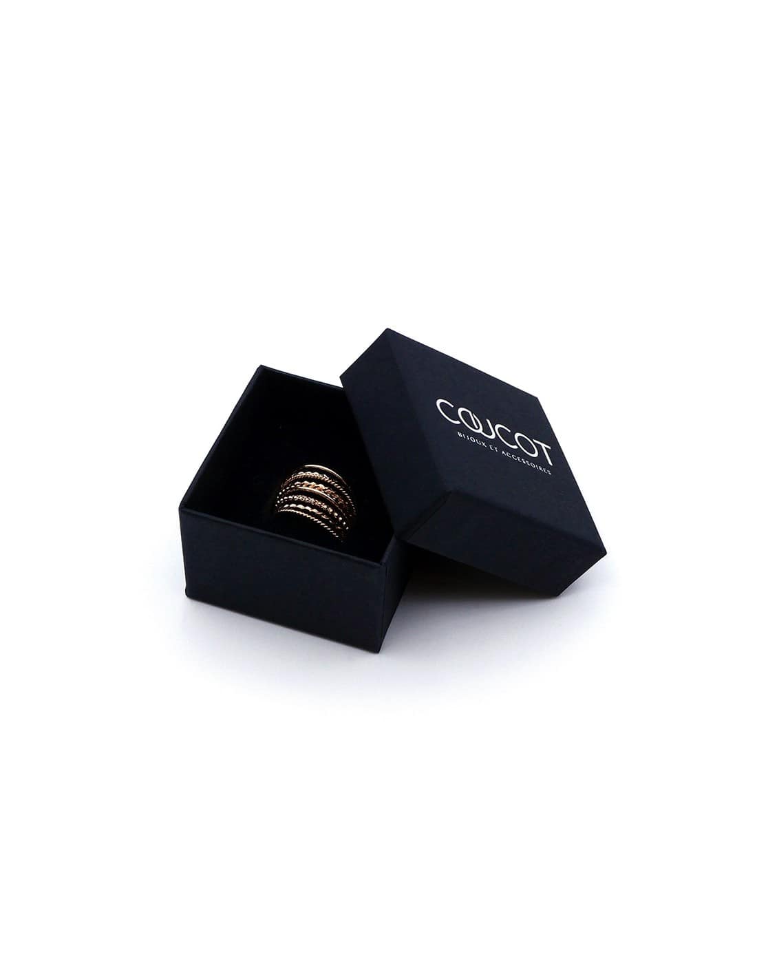Cette bague multi-rangs est composé de 10 anneaux fins en plaqué or 18 K texturés en or torsadé, lisse, ciselé ou finement perlé. Gracieuse, cette bague semainier comporte des détails fins qui feront des jalouses !