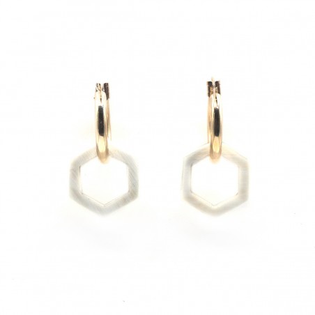 Créoles en plaqué or - anneaux hexagonales en corne claire
