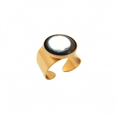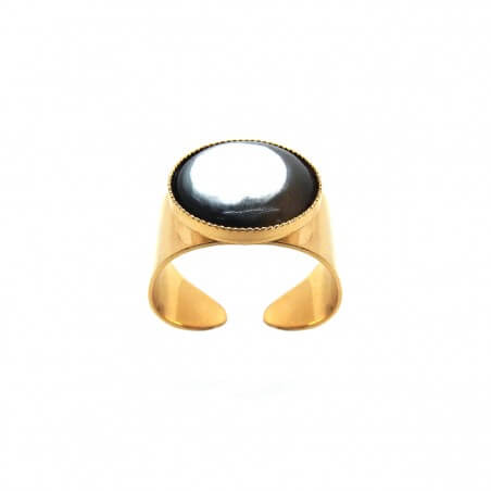 Bague plaquée or (3 microns) sertie d’un rond en corne.