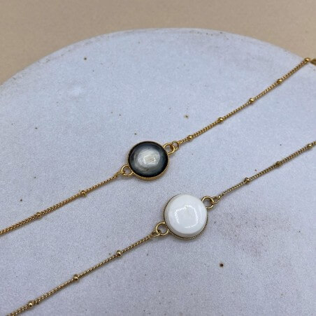 Chaîne plaquée or fine et perlée ornée d’un rond en corne