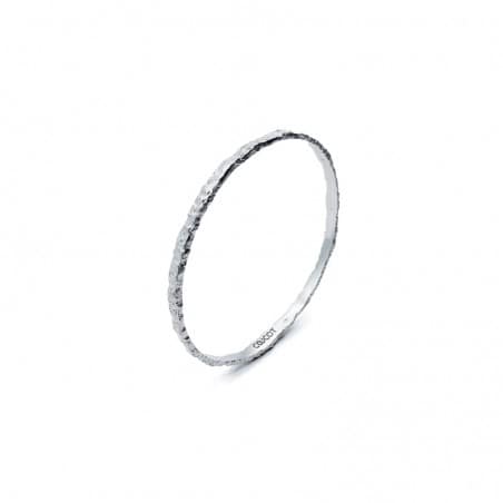 Ce jonc est travaillé avec un aspect de matière évoquant le bois à l'état brut. Associez ce jonc en argent avec d'autres joncs tel que les joncs en corne de la collection corne addict.