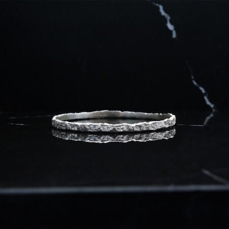 Ce jonc Hyper-IO est fabriqué en petite série au sein de notre atelier lillois. Ce jonc est unique car l'intégralité de sa fabrication est réalisée sur le sol français et par le travail de métal au travers des effets de matières évoquant les matières naturelles telles que le métal, le bois ou encore la glace.