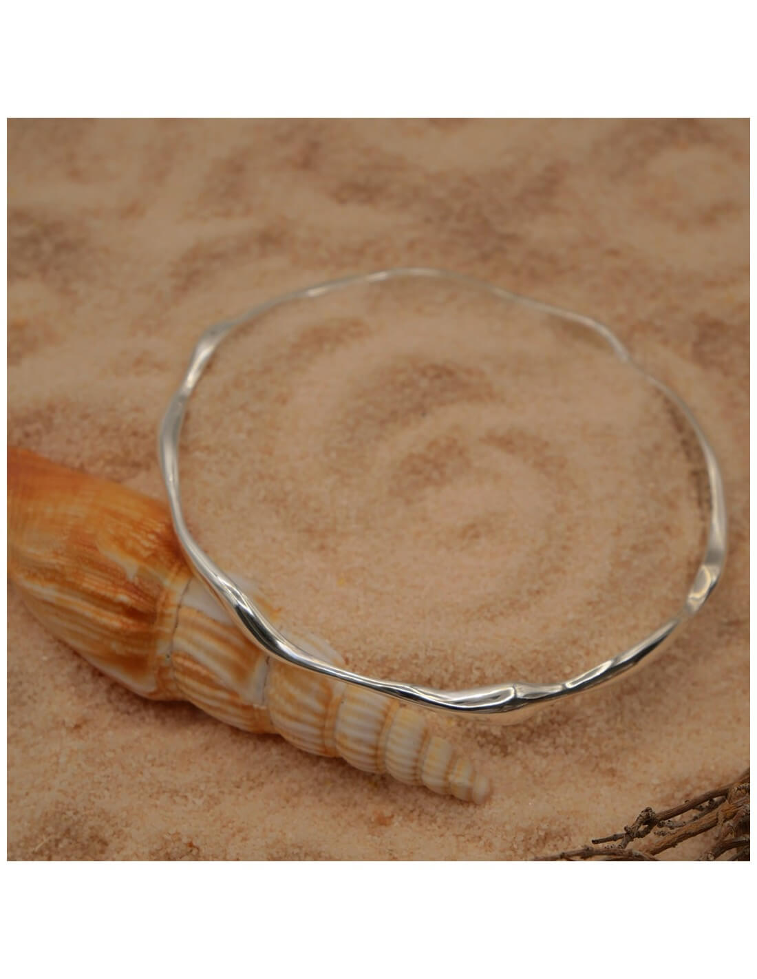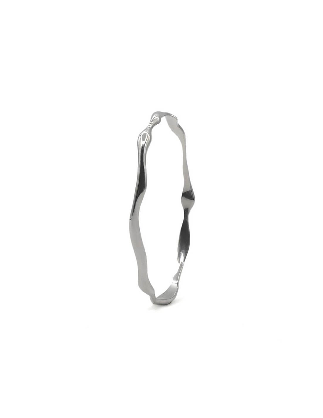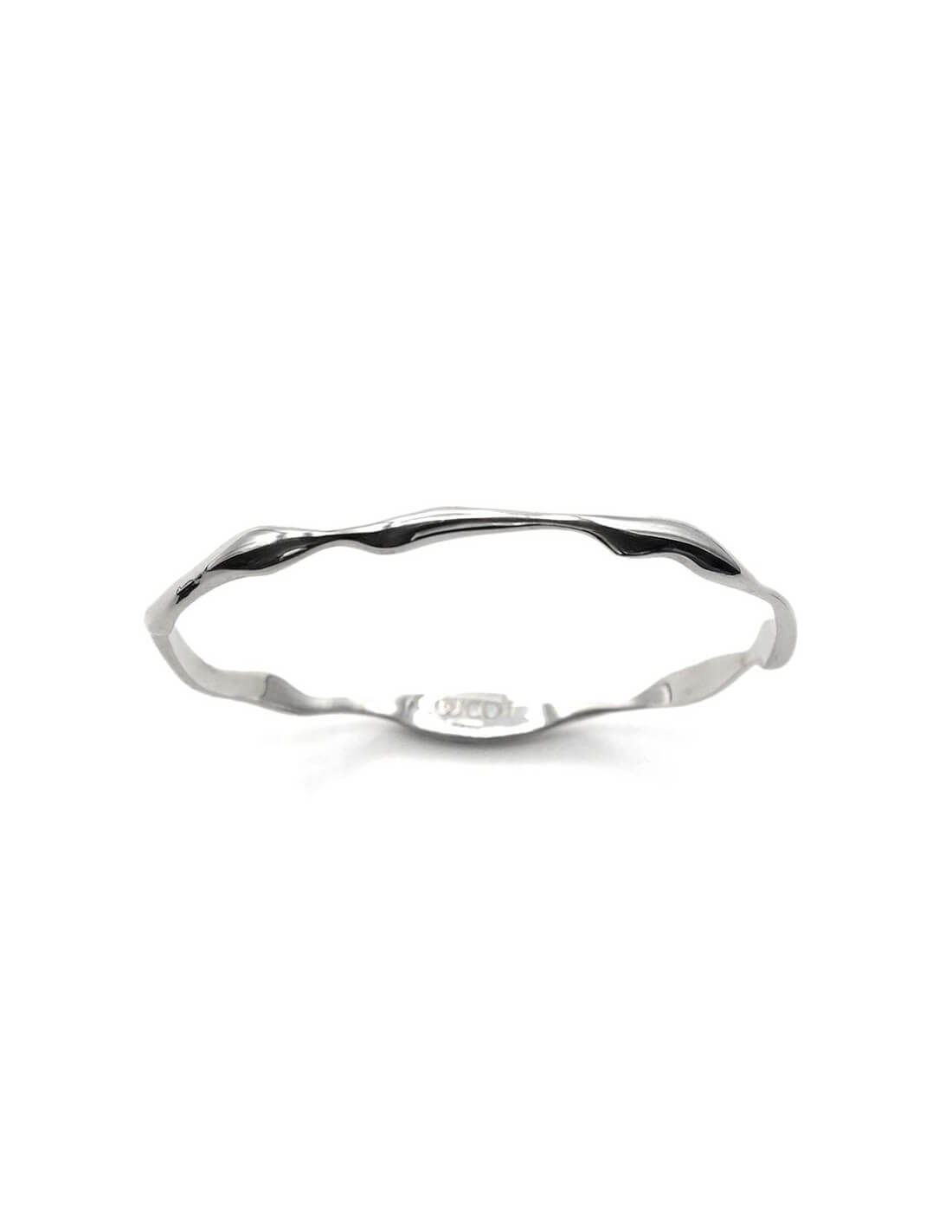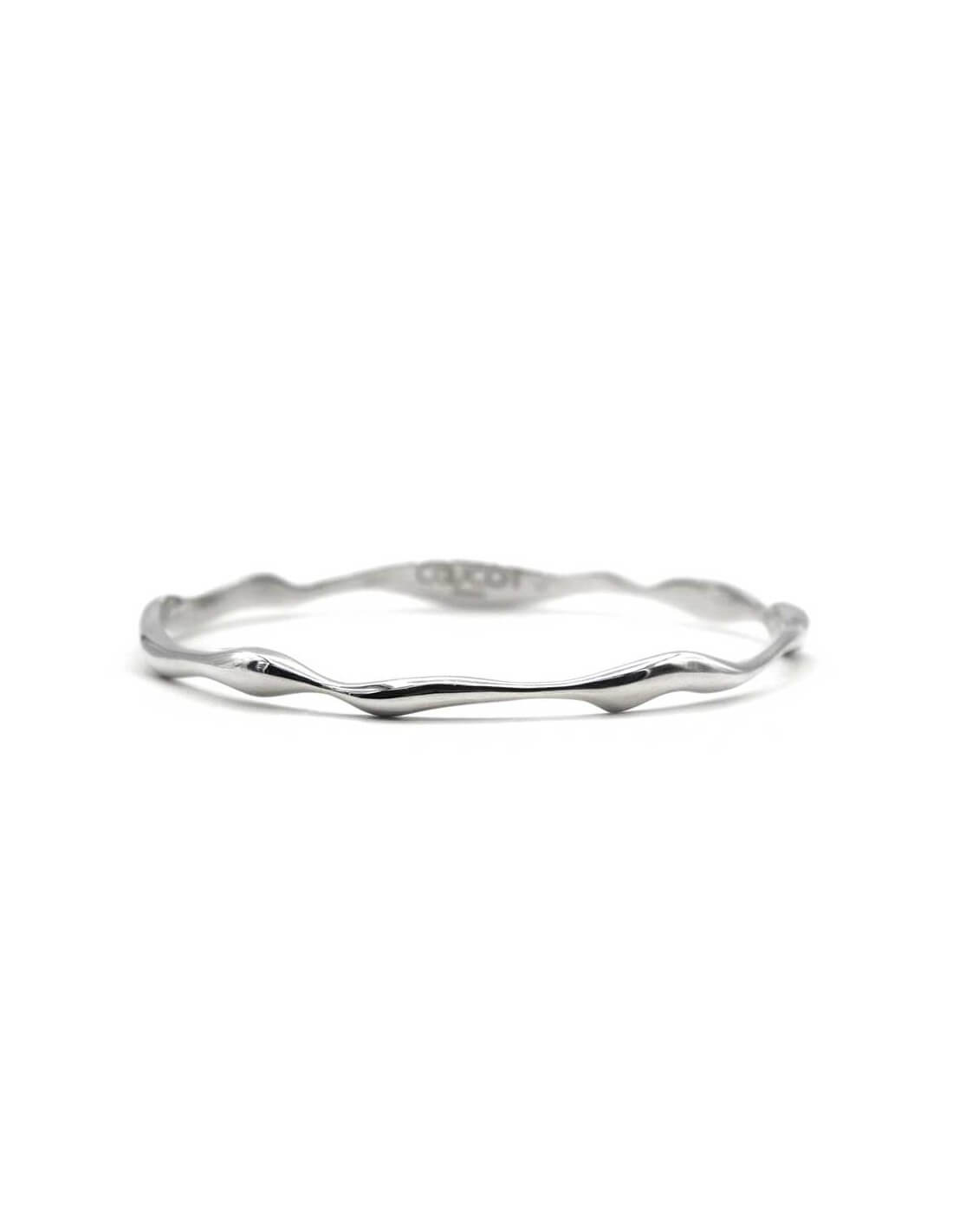 Inspiré par les vagues, le jonc en argent modèle Halo S en capture l’intemporalité et la grâce, avec des formes ondulantes sculptées à la main évoquant des vagues scintillantes et un effet de fluidité.