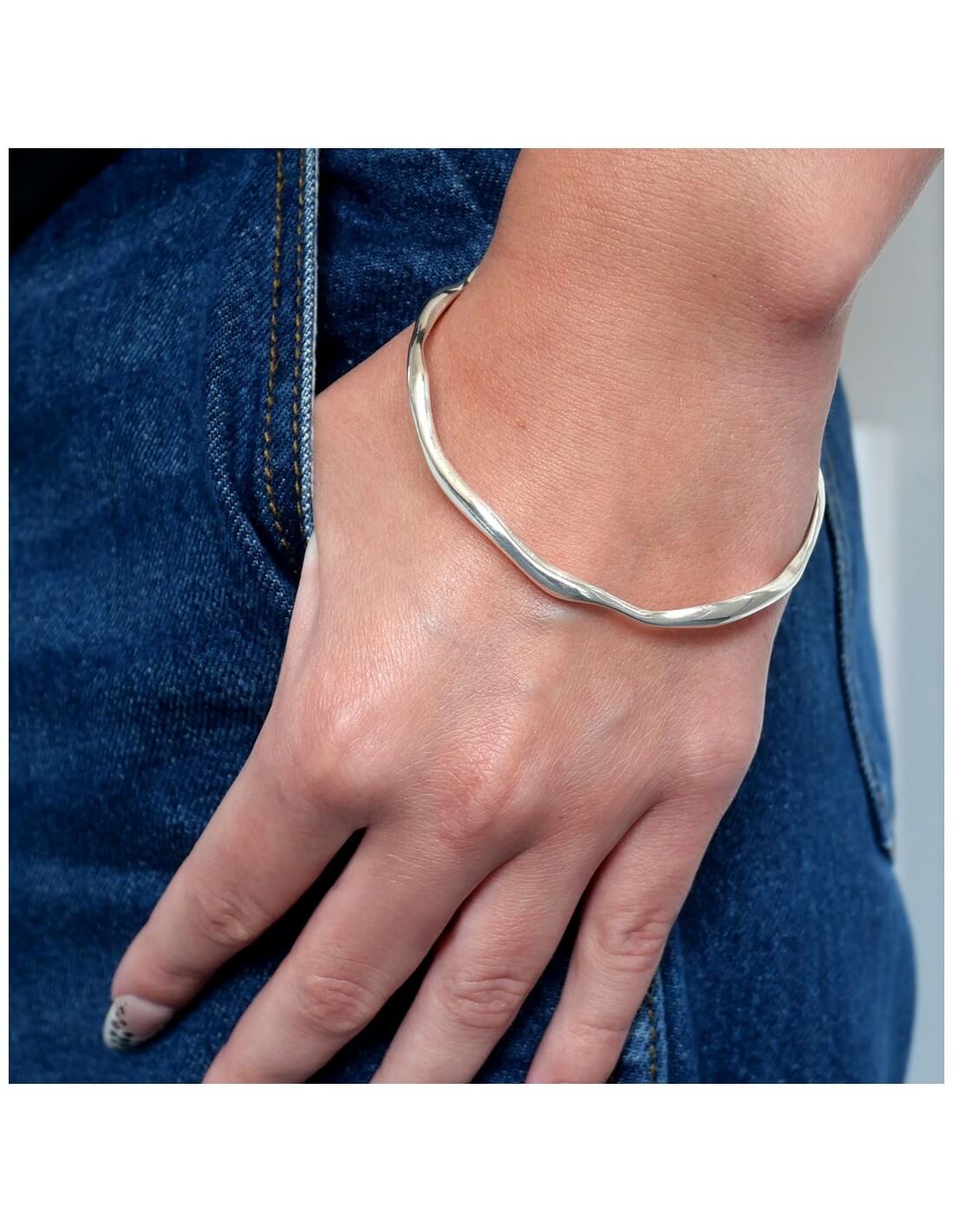 Son design unique, évoquant des vagues scintillantes, allie modernité et délicatesse. Conçu pour épouser parfaitement le poignet, il offre une esthétique qui traverse le temps, tout en apportant calme et élégance.
