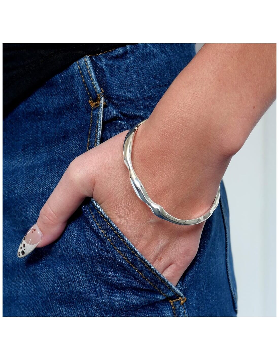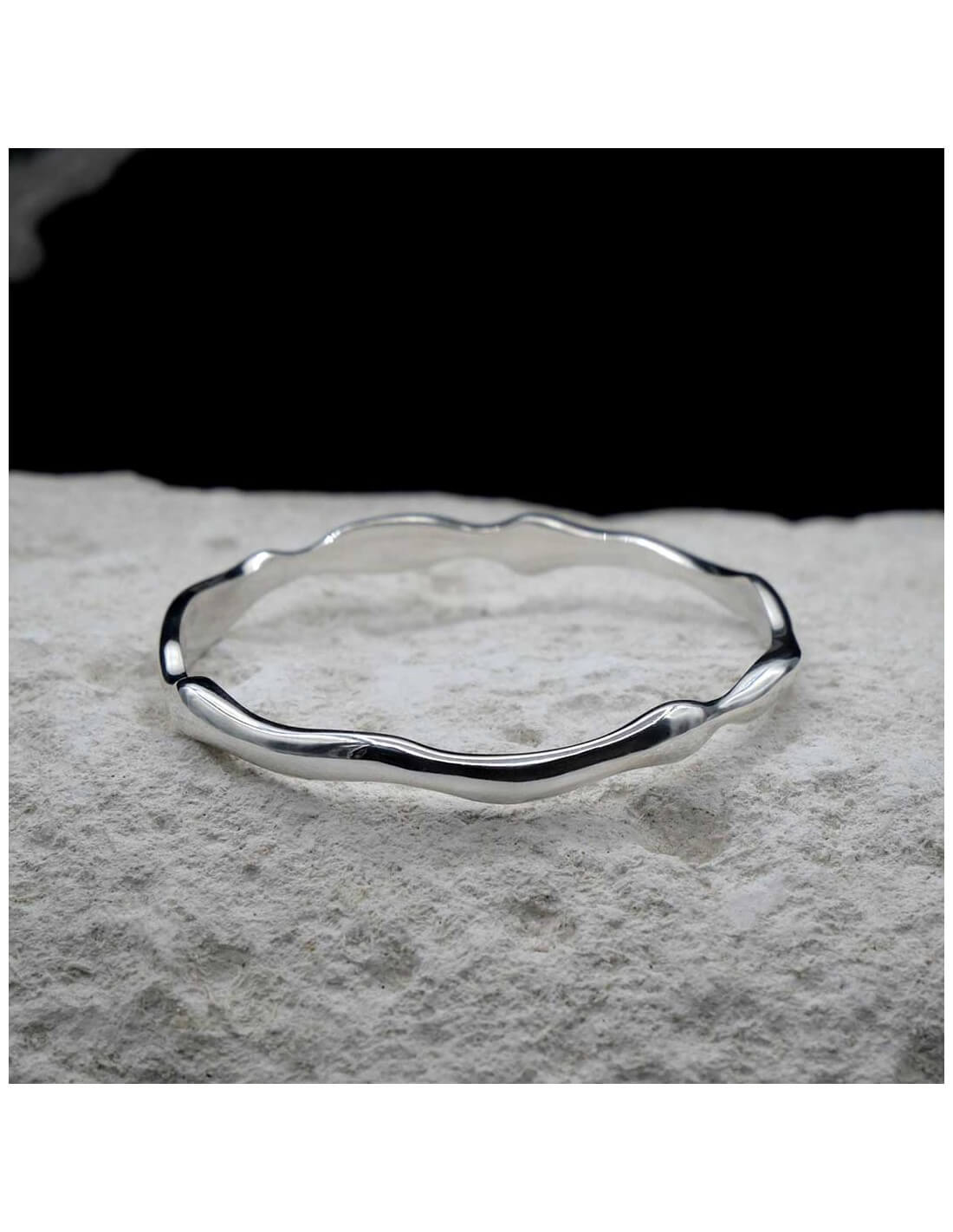 Le jonc en argent Halo M puise son inspiration dans la beauté fluide et mystique des vagues, un élément naturel qui symbolise l’éternel mouvement et la transformation. Façonné à la main dans notre atelier, chaque bracelet se distingue par des formes ondulantes et scintillantes, évoquant une matière vivante et en constante évolution. Cette texture organique, à la fois douce et audacieuse, illustre l’équilibre subtil entre force et élégance.