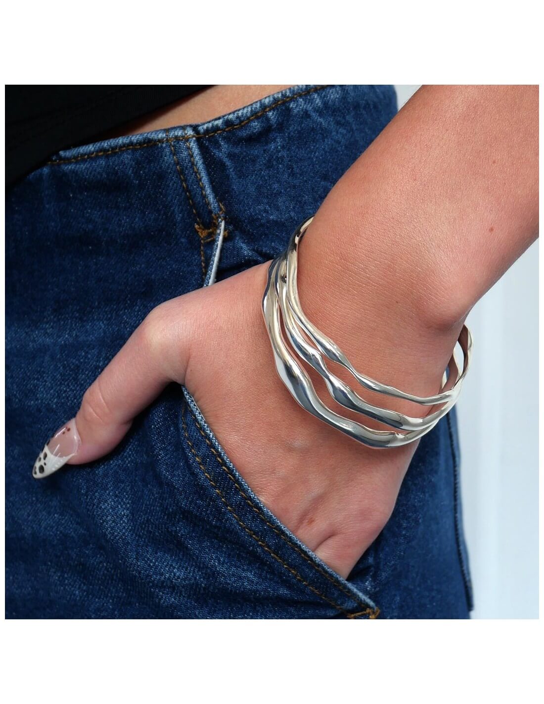 Le design unique du jonc Halo met en lumière une esthétique moderne et intemporelle. Les courbes élégantes du bracelet rappellent l'énergie des vagues qui se brisent contre les rochers, créant un effet de fluidité et de légèreté. Ce modèle est conçu pour épouser le poignet avec délicatesse tout en affirmant une présence unique, à la fois sobre et raffinée.