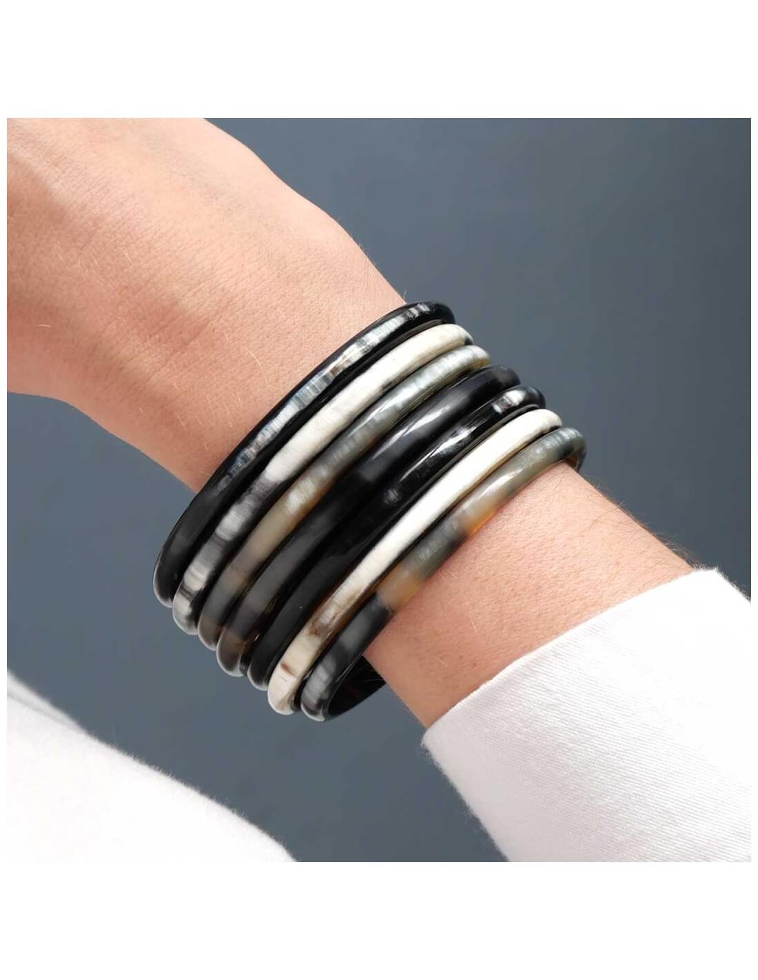 DES JONCS EN CORNE À STACKER À L'INFINI. Ce bracelet jonc est taillé dans la corne. C'est une pièce incontournable de notre marque. Accumulez plusieurs joncs en corne ou mixez les avec les joncs en corne de différentes largeurs et composez un "stack" moderne qui ne ressemble qu'à vous. Le semainier en corne séduit les femmes en quête d'un bijou authentique qui raconte une histoire. Le semainier c’est la combinaison de 7 bracelets fins appelé jonc. Portez le premier le lundi, puis ajoutez un bracelet chaque jour de la semaine ! Un rituel qui vous fait prendre conscience que chaque jour est un cadeau.