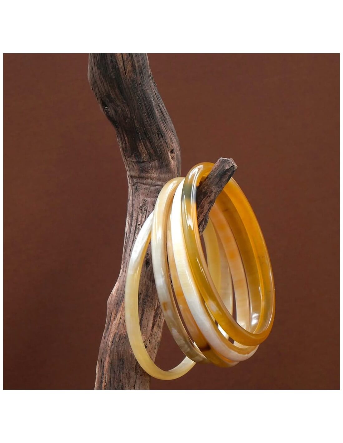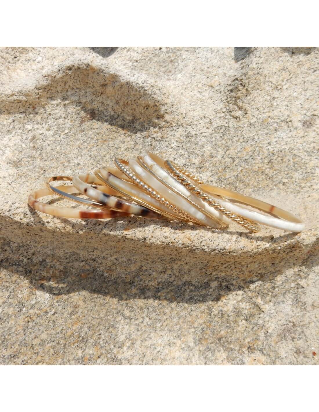 Photo portée de 5 joncs en corne claire 5 mm.