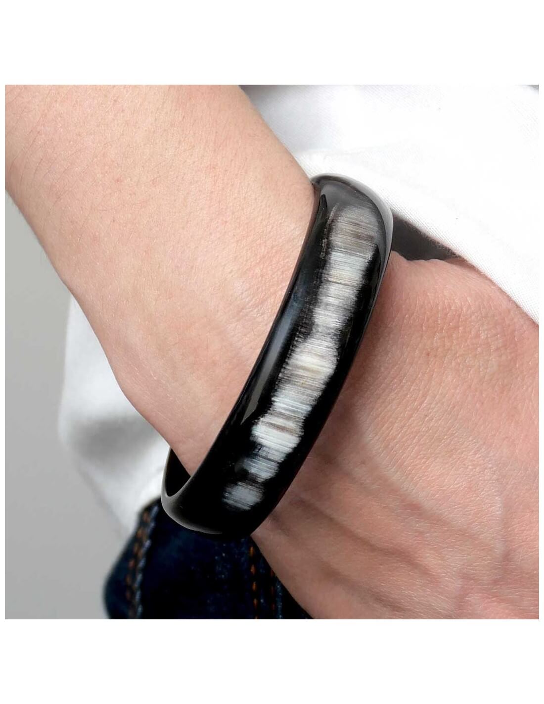 Un jonc en corne indispensable Taillé à la main dans la corne, ce jonc en corne est une pièce indémodable pour toutes les femmes désirant un bijou unique aux couleurs naturelles. Ce jonc en corne ce suffit à lui-même mais vous pouvez l'associer à d'autres joncs en corne ou en métal de différentes largeurs pour composer une jolie combinaison qui ne ressemble qu'à vous.