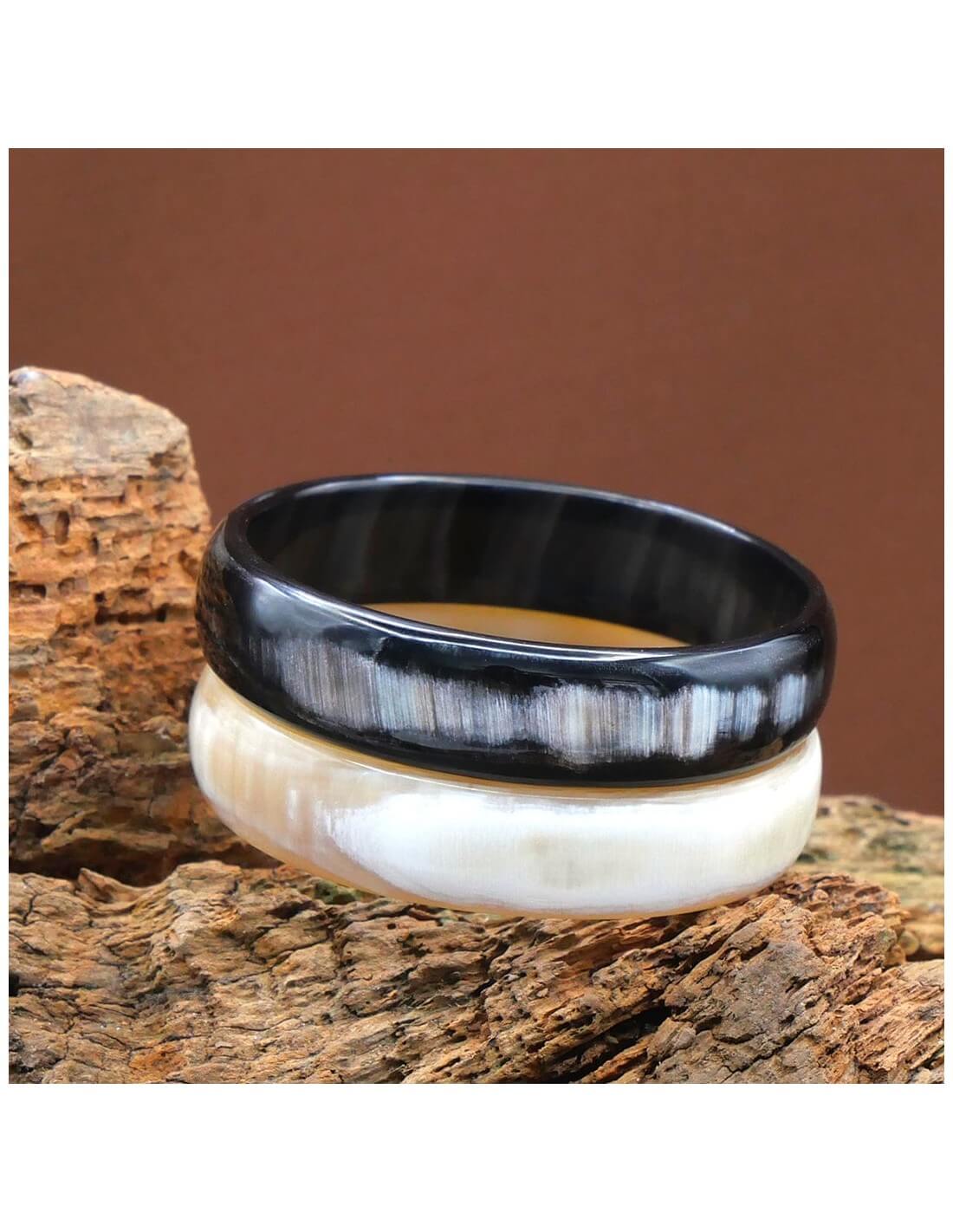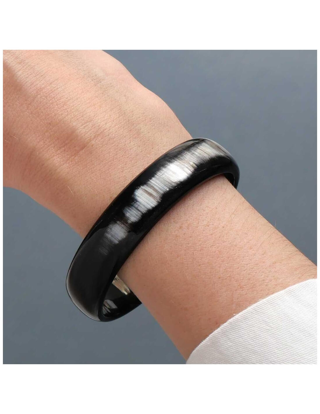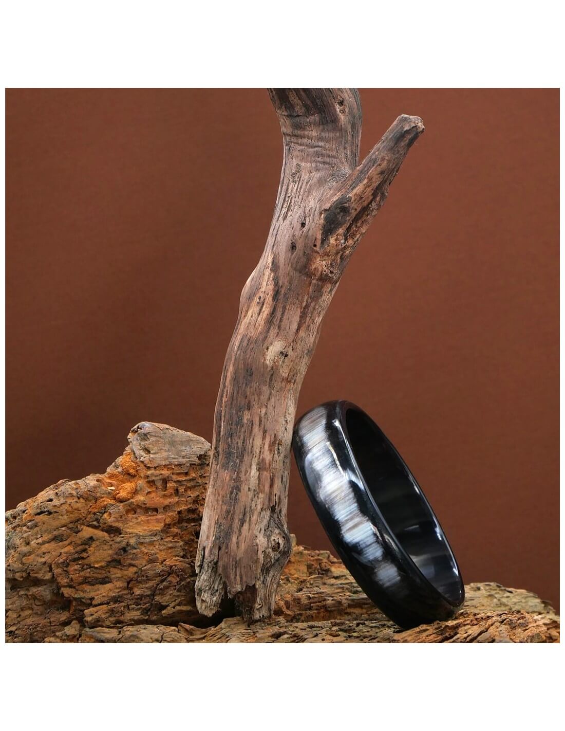Zoom photo portée du jonc en corne foncée 15 mm.