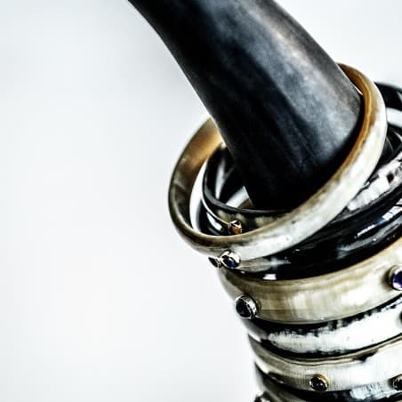 Détails et dimensions : Largeur : 10 mm Poids : 10 gr Diamètre des pierres : 4 mm Nombre de pierre : 1 Tailles disponibles : S-6,2cm / M-6,5cm / L-6,8cm Votre jonc est livré dans une pochette en coton et accompagné d'un certificat d'authenticité ainsi que de nos conseils d'entretien. Ce jonc en corne illumine votre poignet grâce à sa pierre de couleur. Amenez une touche de couleur à votre jonc en y ajoutant une pierre. Les pierres que nous travaillons sont des pierres fines telles que : l'améthyste, la citrine, l'aventurine, la cornaline, l'amazonite, le lapis-lazuli, l'opale, l'onyx noir et la turquoise. Pour connaître le pouvoir des pierres et leurs significations suivez notre guide sur la puissance des pierres. Les pierres sont des matières naturelles, leurs nuances et leurs couleurs peuvent varier par rapport à celles de la photo. Toutes nos pierres sont serties à la main en France. Le sertissage est un procédé qui fixe les pierres dans le métal afin que les bijoux se parent des plus jolies gemmes. Ainsi pas de chance pour qu'elles s'échappent ou volent en éclat. Le sertissage assure le maintien et la protection des pierres même les plus petites. Il se porte seul ou à plusieurs afin de créer un stack. Le stacking c'est l'accumulation de bracelets qui créer un stack. Le jonc en corne se suffit à lui-même mais vous pouvez très bien l'associer à un bracelet de famille ou un autre bracelet de nos collections. Parce que nous souhaitons que nos bijoux vous accompagnent toute votre vie, ces derniers sont fabriqués en corne véritable. Ce jonc est entièrement réalisé à la main en France. Choisissez la couleur votre jonc : La couleur claire est lumineuse en été comme en hiver, la couleur foncée est une valeur sûre qui se porte facilement. Pour assurer une longue vie à votre bijou consultez votre certificat d'authenticité délivré avec chacune de nos créations. Suivez notre guide pour choisir le bracelet qui ne vous lassera pas et notre guide pour connaître votre taille de bracelet. Suivez également notre page guide pour l'entretien de vos bijoux.