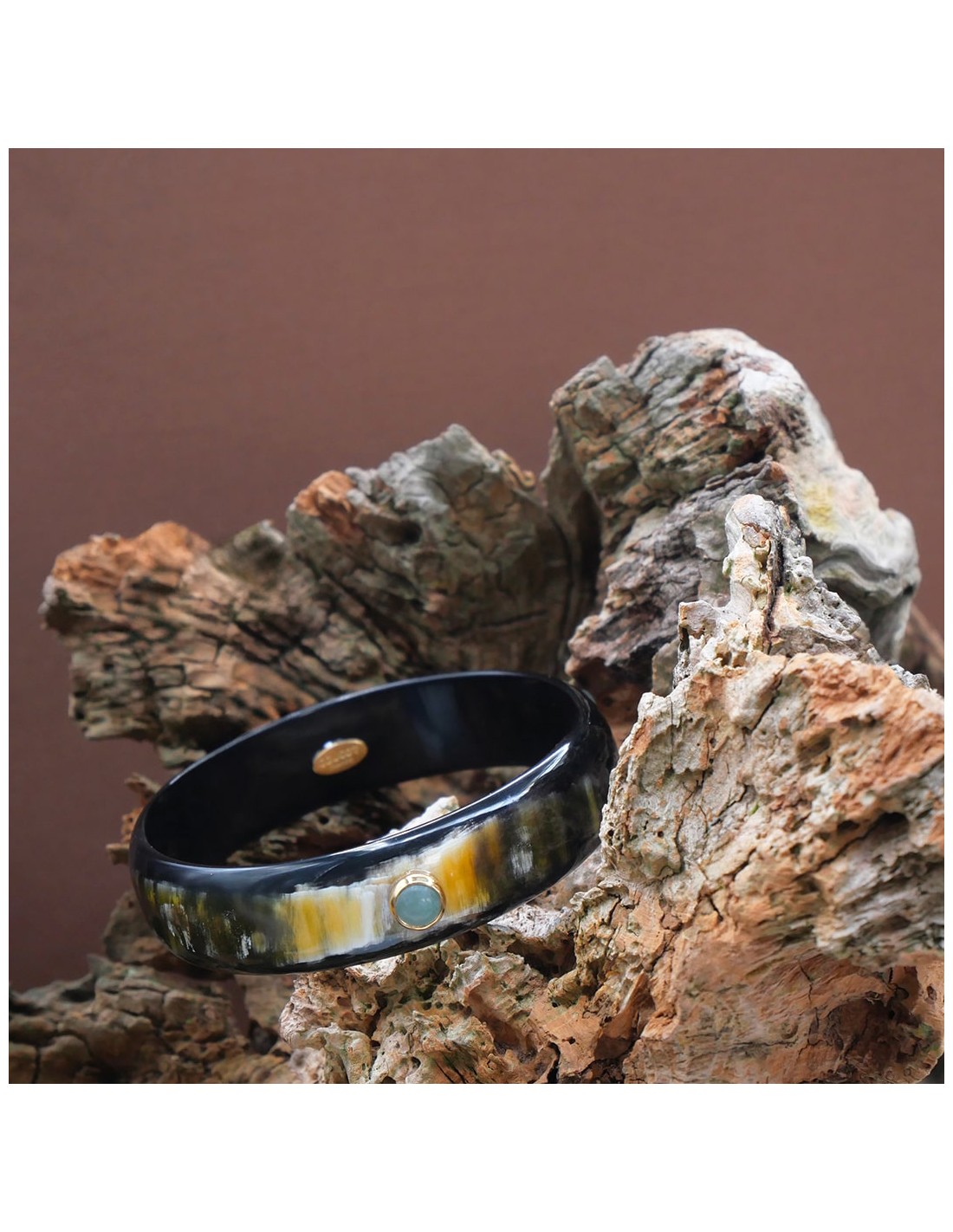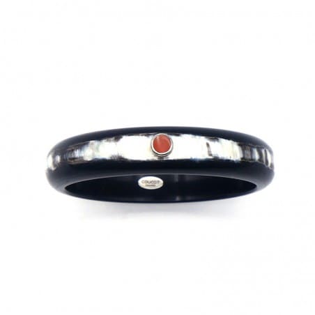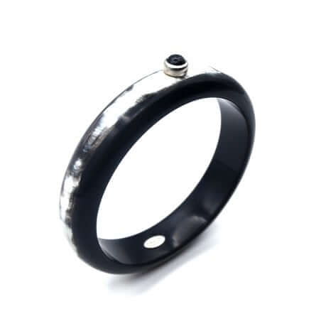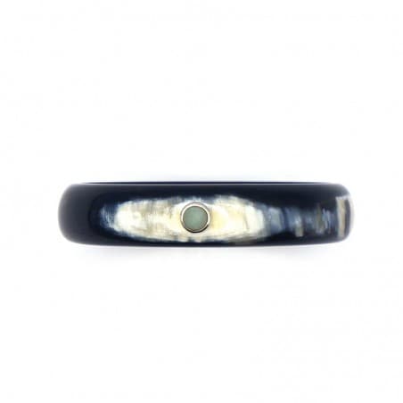 Jonc en corne foncée 15mm serti argent - pierre 6mm