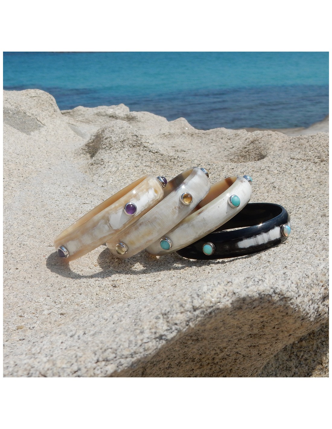 Jonc en corne claire 15mm serti argent - 5 pierres 6mm