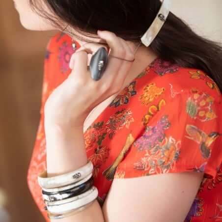 Cette bague en corne est entièrement réalisée à la main dans notre atelier en France.