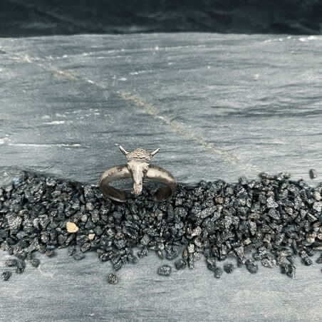 Cette bague tête de buffle est fabriquée en argent 925 et sculptée à la main au sein de notre atelier lillois.
