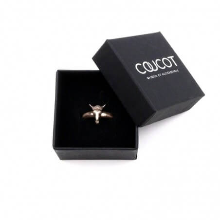 La tête de buffle qui orne cette bague est un des symboles de la collection Memento. Symbole bohème et spirituel, la tête de buffle apporte une touche qui rappelle le voyage et l'exotisme. La tête fait référence à la tête de buffle mais aussi à la tête de bison, de zébu... Ces animaux qui imposent force, puissance et respect et qu'on retrouve habituellement dans les déserts et les films de western.