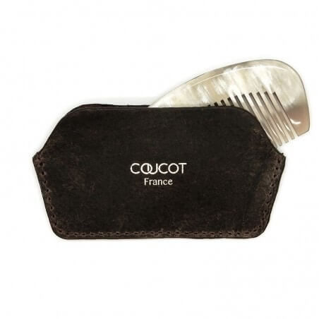 Commandé seul, votre étui en cuir est livré dans une pochette en coton. Commandé avec son peigne associé, il sera directement conditionné avec votre peigne en corne.