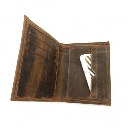 Il accueille entre 7 et 11 cartes. Quatre emplacements pour emporter tout le nécessaire : carte bancaire, carte Vitale, permis de conduire… Ainsi que deux grands compartiments pouvant accueillir les billets. Au-delà de sa fonction initiale, ce dernier est créé sur mesure pour accueillir le peigne à barbe le Petit Marcel. L'occasion pour vous de vous refaire une beauté à tout moment. Ainsi un emplacement spécial est prévu pour le ranger afin que votre peigne à barbe vous accompagne toute la journée tout en restant à l'abri des chocs. Petit et léger, une fois plié en deux, il se glisse dans une poche, un petit sac ou la poche d'une veste. Bref, un porte-cartes qui devient un véritable compagnon de vie.