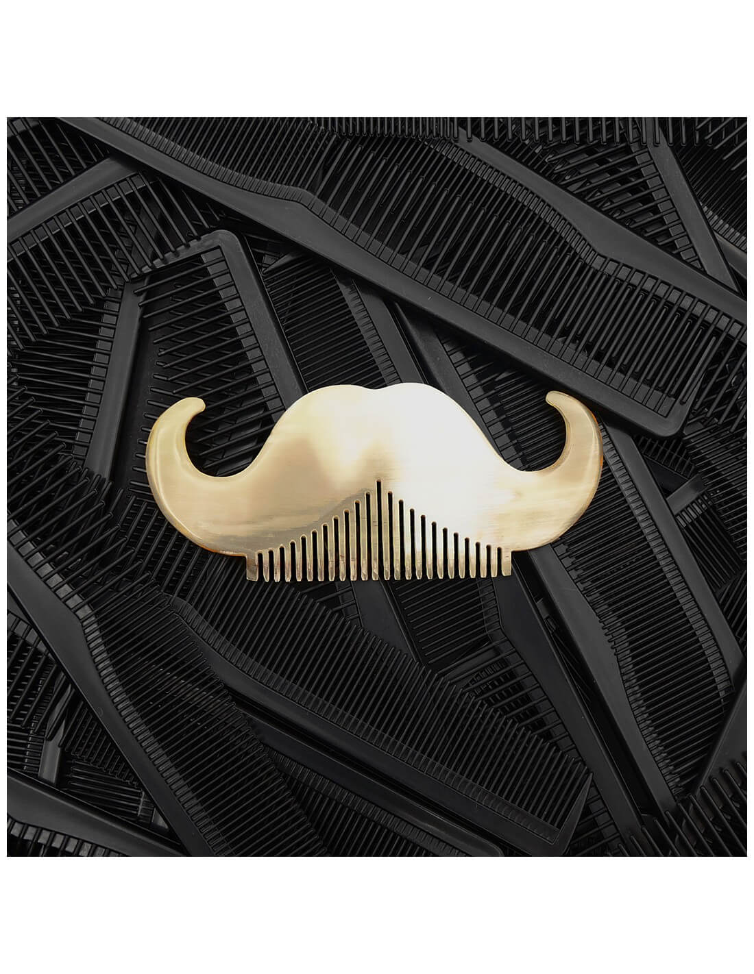 Au XVI siècle, les élégants "avaient toujours sur eux leur petit peigne à moustache et les femmes ne dédaignaient pas d'apporter la main à la toilette de Monsieur. On considère comme une faveur d'avoir les moustaches relevées par la main d'une belle". Grâce à son petit format, ce peigne à moustache se glisse dans une poche de veste pour vous repeigner soigneusement à tout moment de la journée. Il enlève les miettes d'un repas ou replace vos bacchantes à leur place.