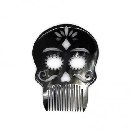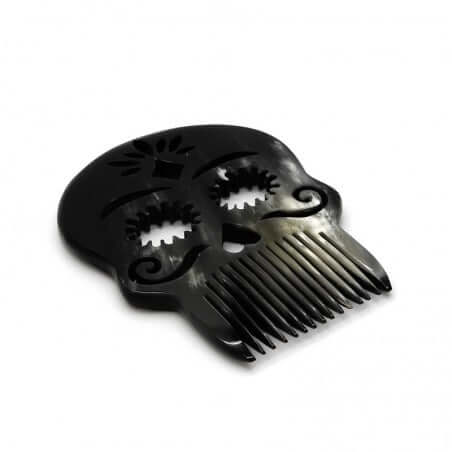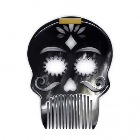 Le peigne en corne Calavera Tête de mort est le peigne à barbe pour tout barbu tatoué en quête d'une barbe clean.